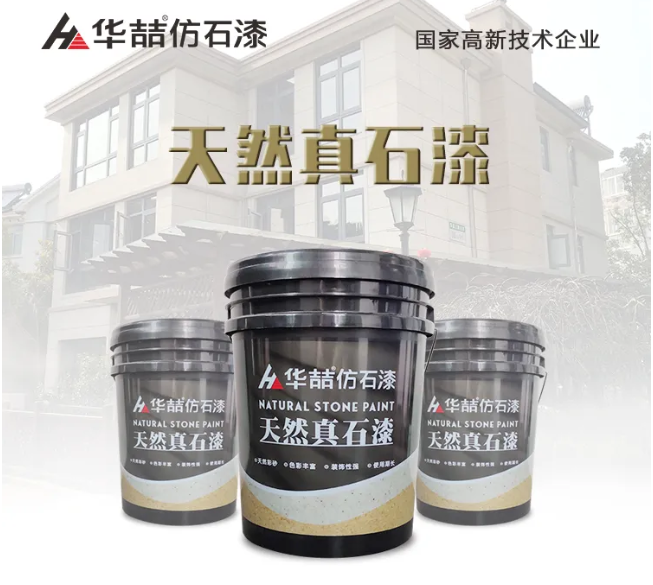 華喆仿石漆—天然真石漆,是一種新型優(yōu)質(zhì)水性環(huán)保內(nèi)外墻裝飾涂料,完全采用天然彩色石粉與高分子聚合物結(jié)合而成;